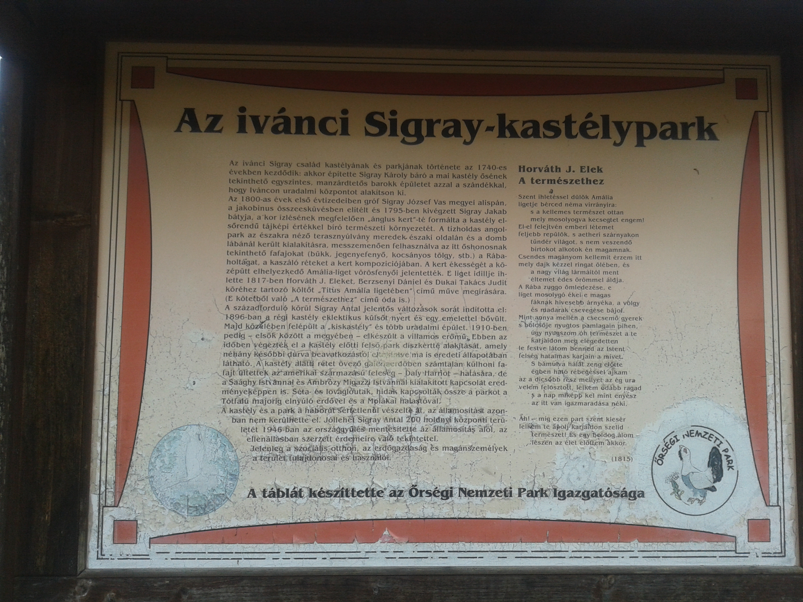 A Sigray emlékpark – Millenniumi emlékpark a turisztikai attrakciók közé sorolható. Kialakítása a Millennium évében történt. Bejáratát a Sigray kastély megmentett 100 éves kovácsoltvas kapuja díszíti. A parkban található gróf Sigray Antal fejszobra. A parkban ifj. Vastagh György (1868-1946) szobrászművész által alkotott, a Sigray család kedvenc kutyájának cézárnak a bronz szobra látható. A parkban sétálva fedezhető fel Ambrus Éva által alkotott díszkút. Ugyancsak az emlékparkban kapott helyet Nepomuki Szent János szobra. Kossuth Lajos születésének 200. évfordulójára lett emléktábla felavatva, amely tiszteleg 32 jobbágysorból felszabadított ivánci család emlékének. Az 1848-49-es szabadságharcban elesett ivánciak emlékére kopjafa került felállításra. Az ivánci nemzetőrök emlékoszlopa, amely a 2000. évben került felavatásra a millennium napján, a nemzetőrök neveivel.